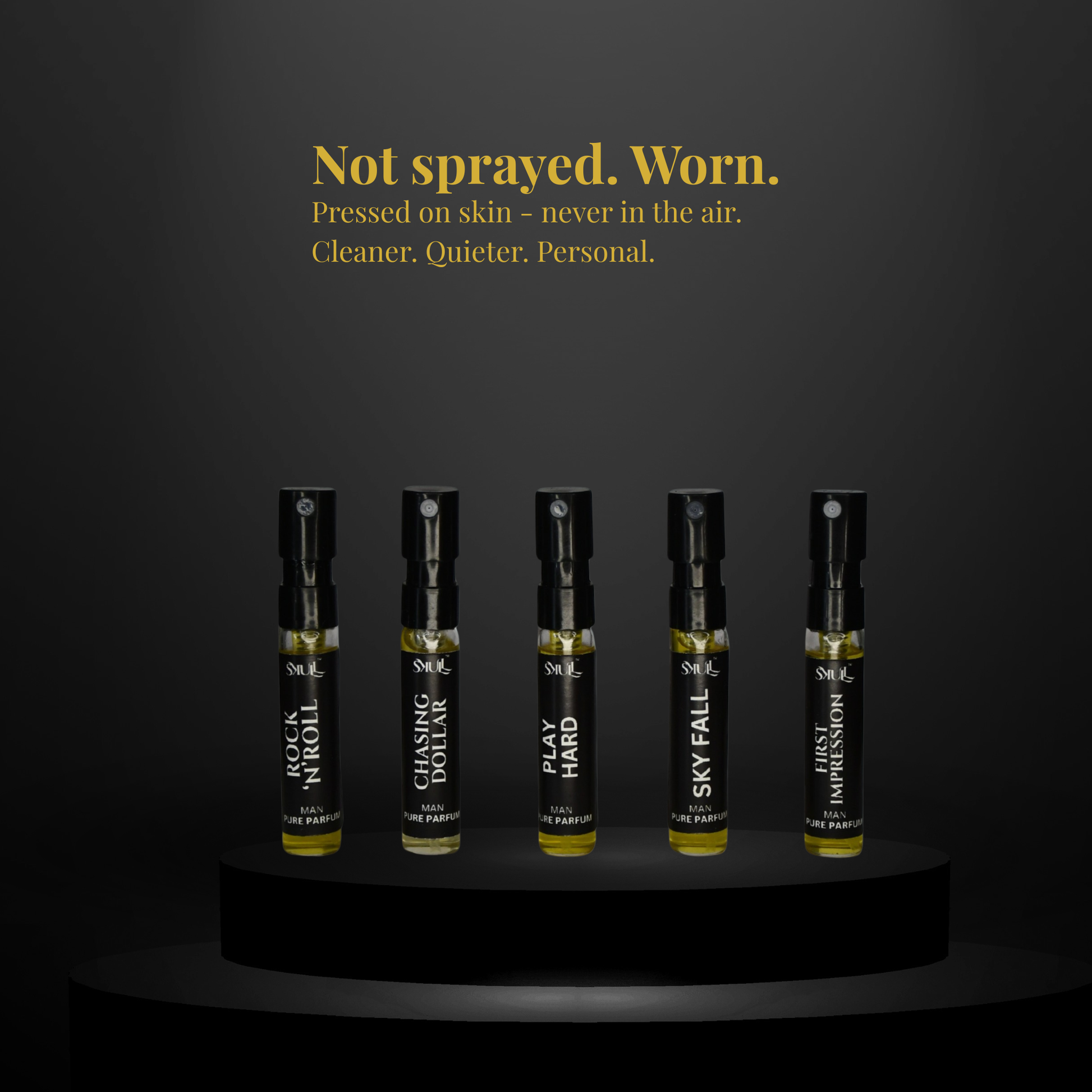 Because it’s worn on skin (not sprayed in air), SKULL evolves with body warmth and stays present for hours — instead of disappearing when clothes change.