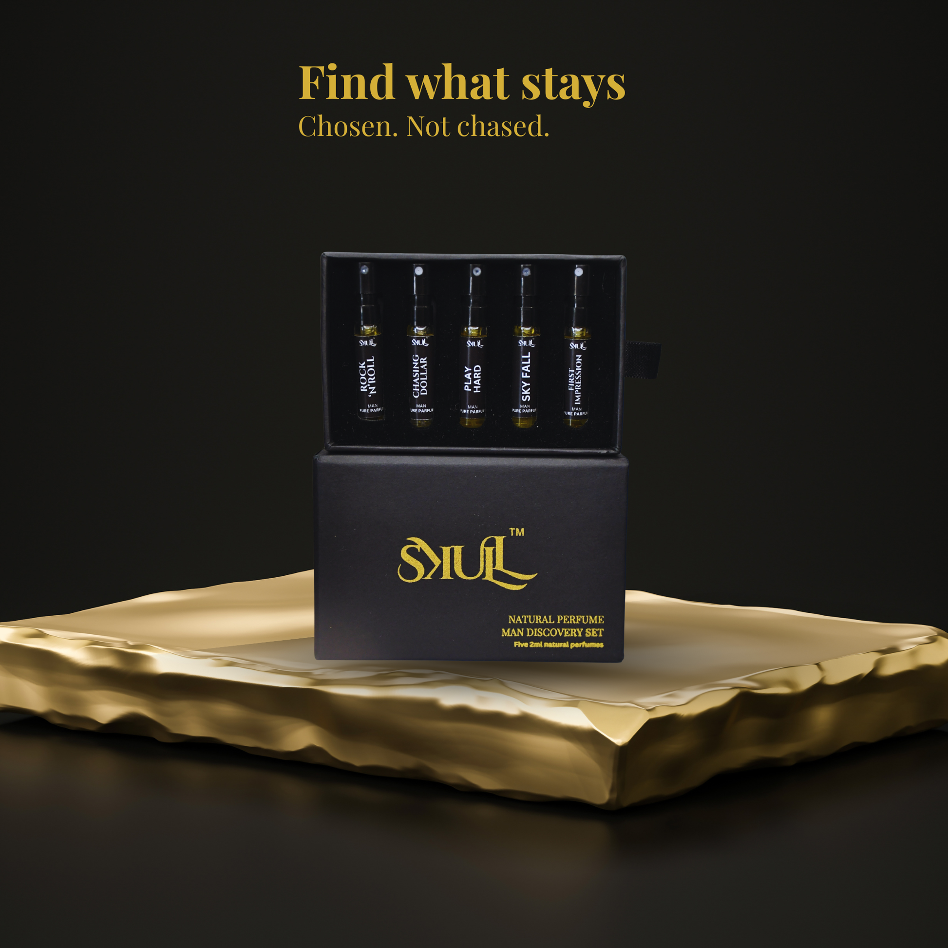 The SKULL Discovery Set lets you experience five distinct masculine signatures — on your skin, not in the air.